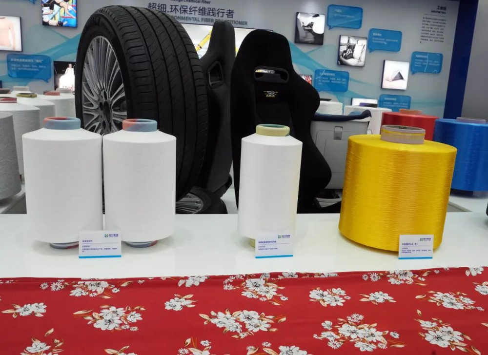 位于大连长兴岛的恒力石化产业园内展示的环保纤维和环保高端工业丝产品/新华社记者章磊摄