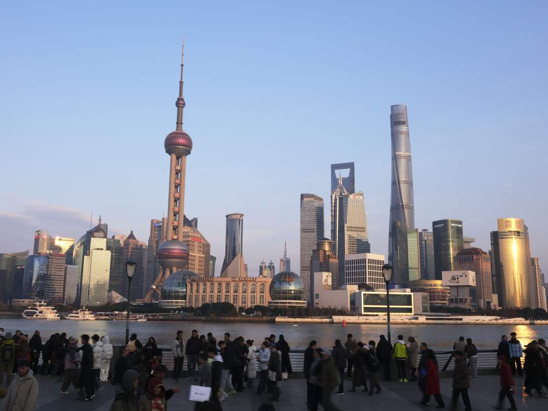 2月17日,上海市外滩人流如织,感受新年的欢乐氛围。