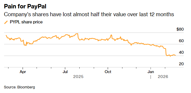 前首席执行官亚历克斯·克里斯(Alex Chriss)在本月因其转型计划未能达到预期而被免职。该公司2025年第四季度利润和营收均未达到分析师预期,且支付交易量持续放缓。