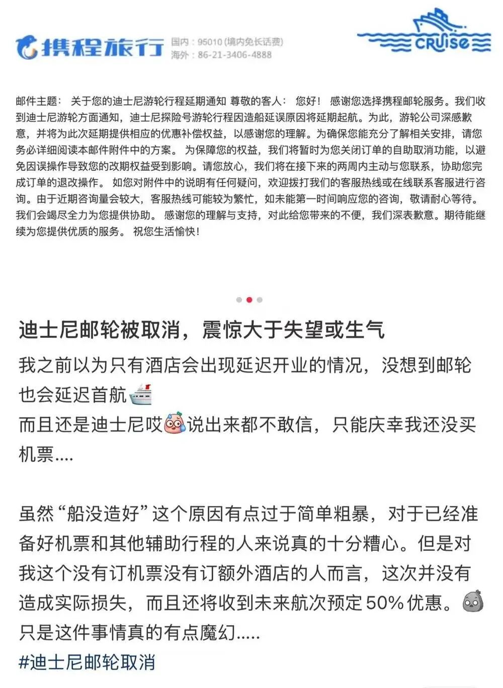 2025年9月,一则消息打乱了2万多名旅客的出行计划。迪士尼探险号游轮因造船延期,部分航次被迫取消,涉及出发日期从2025年12月横跨至次年3月。对于已经订好机票酒店的游客来说,这意味着可能面临数万元损失。