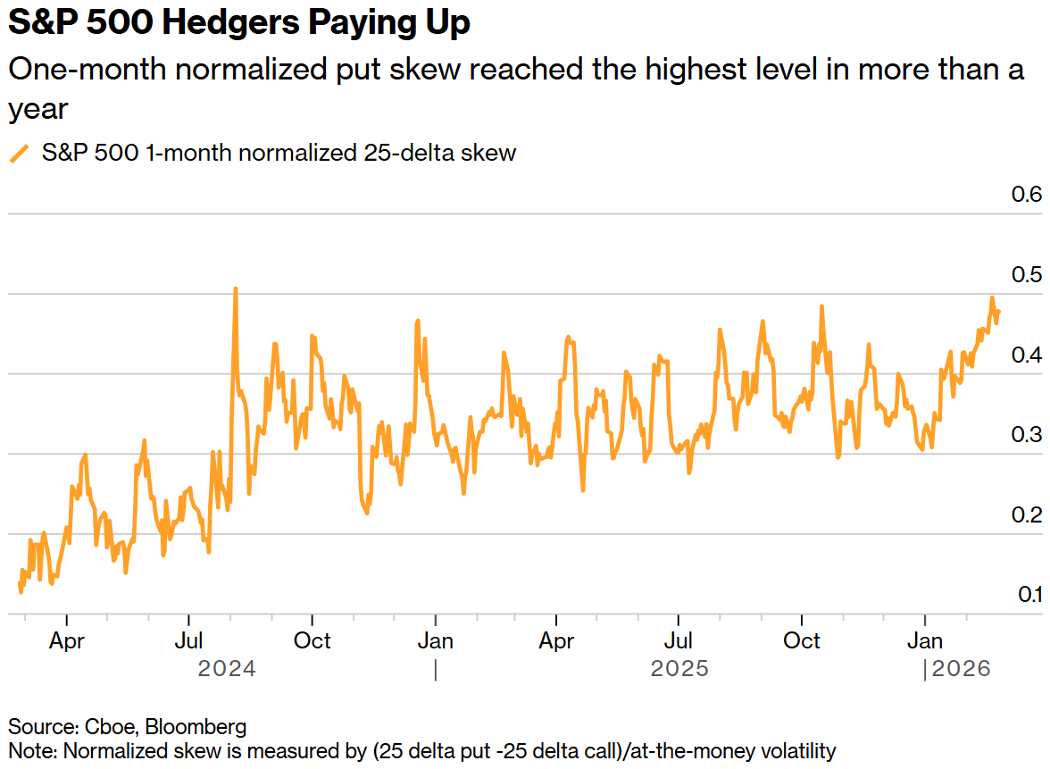 一个月期标准化看跌期权偏度达到一年多来的最高水平