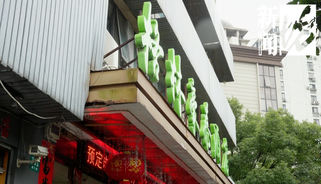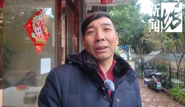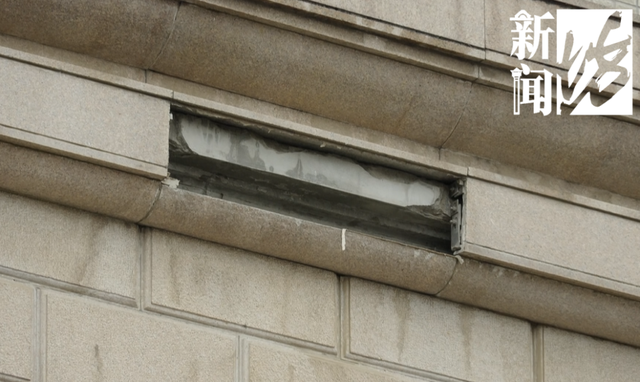 附近商户:“这块就是去年,我们坐在下面,突然掉下来的,声音很大的,像地震一样掉在我们广告牌上面敲了个洞。”