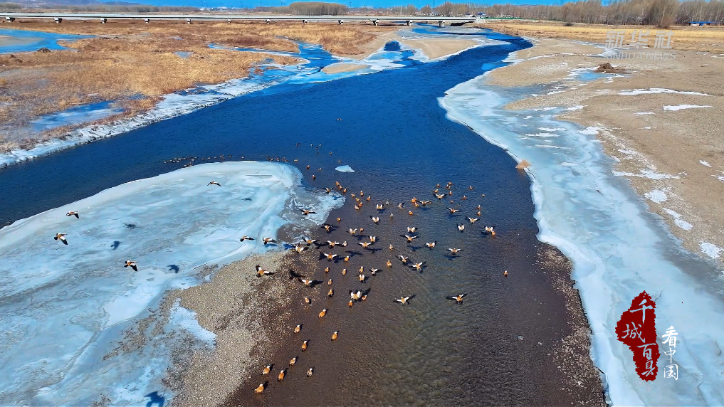 冰雪初融,内蒙古自治区乌兰浩特市洮儿河碧波荡漾。成群赤麻鸭逐水嬉戏、振翅翱翔,为红城大地奏响春日序曲。