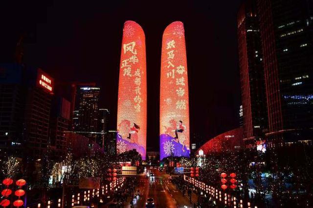 当晚7时27分,天府双塔瞬间点亮,“风华正茂 成都我的家”以“锦绣天府·灯耀万象”灯光秀正式启幕。非遗织纹在双塔上徐徐展开、锦鲤熊猫憨态可掬、龙凤闹春点亮科技元宵、万马奔腾踏出团圆安康,四大光影画面依次流转,将传统年味与现代科技完美交融。