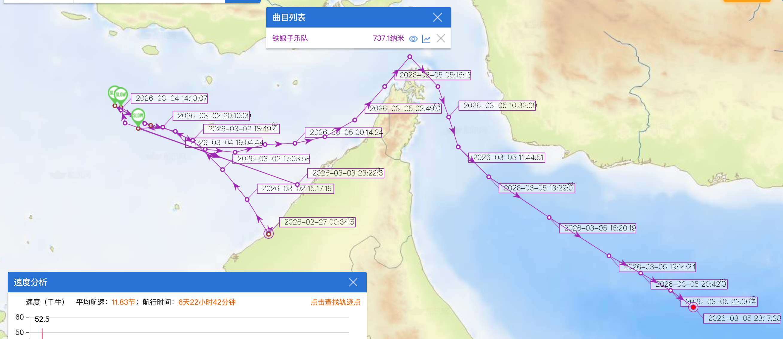 “铁娘子号”从2月26日至3月5日行动轨迹 来源/船讯网截图