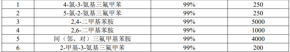 间三氟甲基苯胺为无色透明液体,用于农药、医药、染料等中间体;邻三氟甲基苯胺为无色或淡黄色透明液体,用于农药、染料、医药中间体;对三氟甲基苯胺为无色液体,用于农药、医药中间体,本项目中主要作为农药中间体使用。