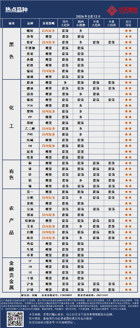 中天策略:3月12日市场分析