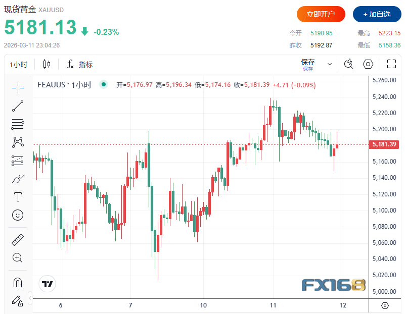 在通胀数据公布后,黄金市场出现一定程度的获利回吐。现货黄金持续走低并刷新日低至5148.96美元,较日高下跌75美元。