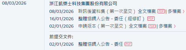 2026年3月8日,来自浙江嘉兴南湖区的浙江凯乐士科技集团股份有限公司Zhejiang Galaxis Technology Group Co., Ltd.(以下简称"凯乐士科技")向港交所披露聆讯后的招股书,或很快在香港主板挂牌上市。其于2025年6月25日、2026年1月2日先后两次递表。