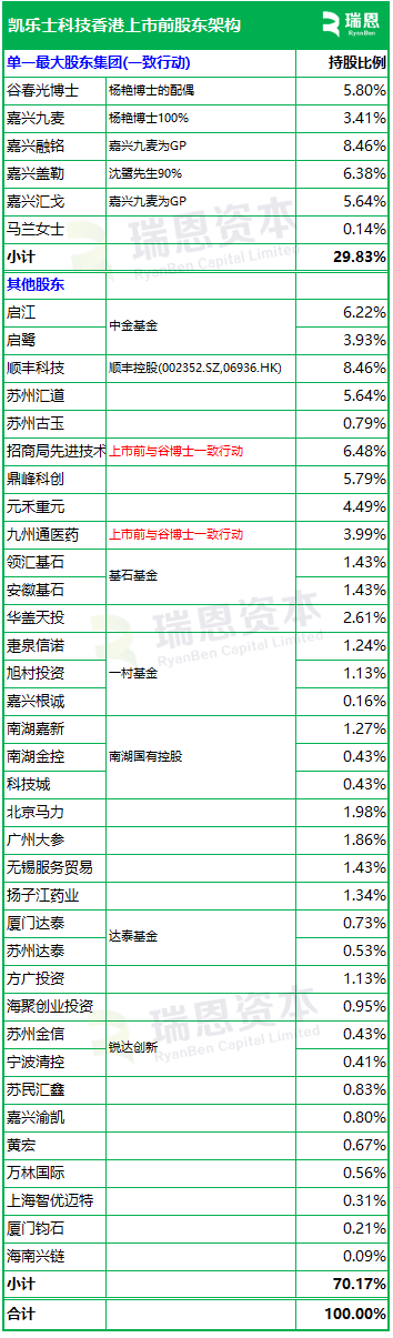 招股书显示,凯乐士科技在上市前的股东架构中,