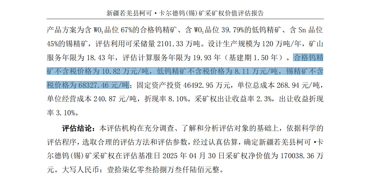 那么2025年评估为17亿元的采矿权价值,按照今年涨超800%的钨精矿价来看,紫金矿业买下的矿山如今价值几何呢?