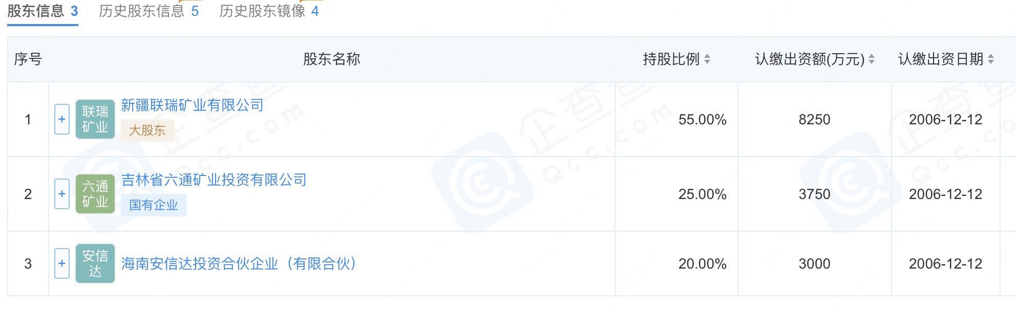 实际上大股东安信达投资也缺钱,其将联瑞矿业另外53%的股权已经抵押给了紫金矿业。