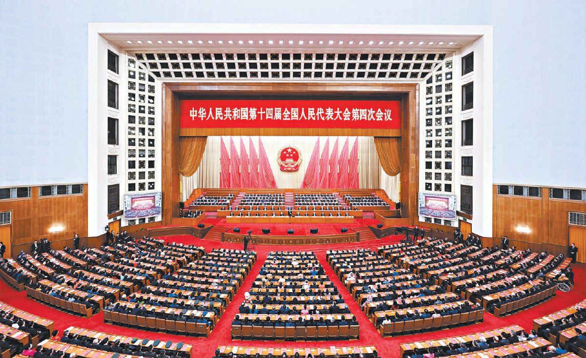 昨天下午,第十四届全国人民代表大会第四次会议在北京人民大会堂举行闭幕会。 新华社发
