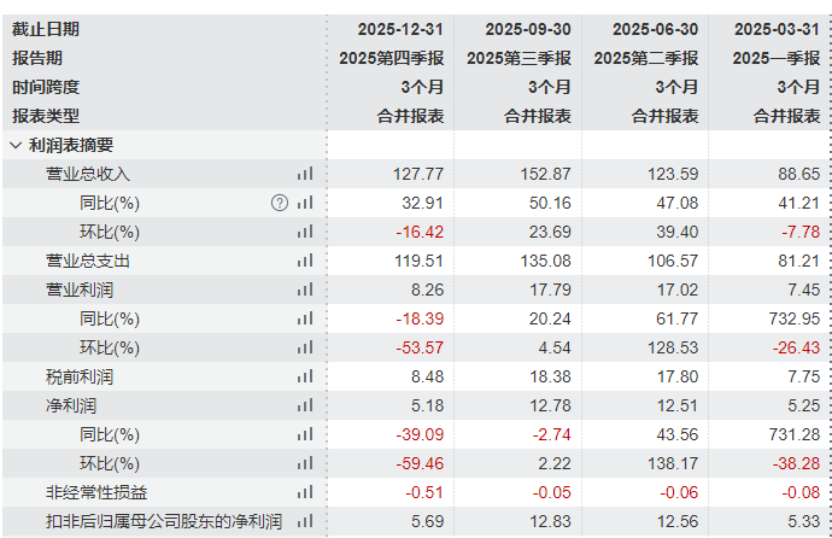 其中,去年第四季度业绩更是出现大幅滑坡,净利润跌至5.18亿元,同比下滑39.09%,净利润率从2024年同期的8.8%骤降至4.1%,近乎腰斩。