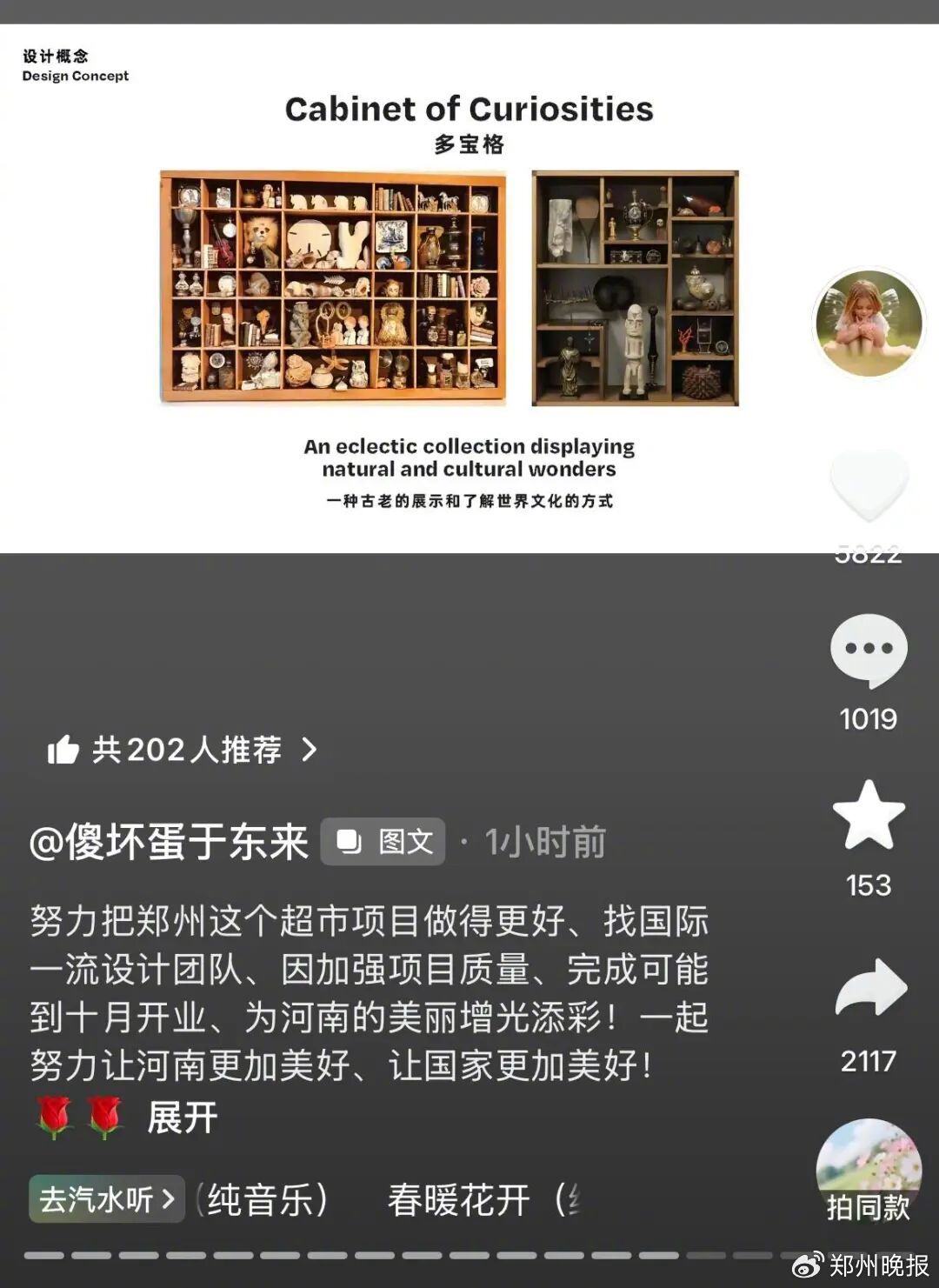 3月13日,胖东来创始人于东来在社交平台发布了19张照片,配文称“(为)努力把郑州这个超市项目做得更好,找(了)国际一流设计团队,因加强项目质量,可能到十月开业。”