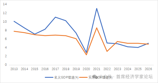 综上,在更加积极的财政政策的推动和适度宽松的货币政策的支持与配合下,2026年固定资产投资增速将明显加快,消费将稳中有升,房地产业对经济的拖累作用将逐步减弱,内需有望平稳增长,稳中有进。全年GDP规模有望达到147万亿元左右,实际GDP增速有望实现4.5-5.0%的增长目标;同时外部输入性通胀压力预期上升,加之国内需求逐步修复,物价指数温和回升,平减指数有望转正,名义GDP经济增速也可能在4.5%-5.0%区间。