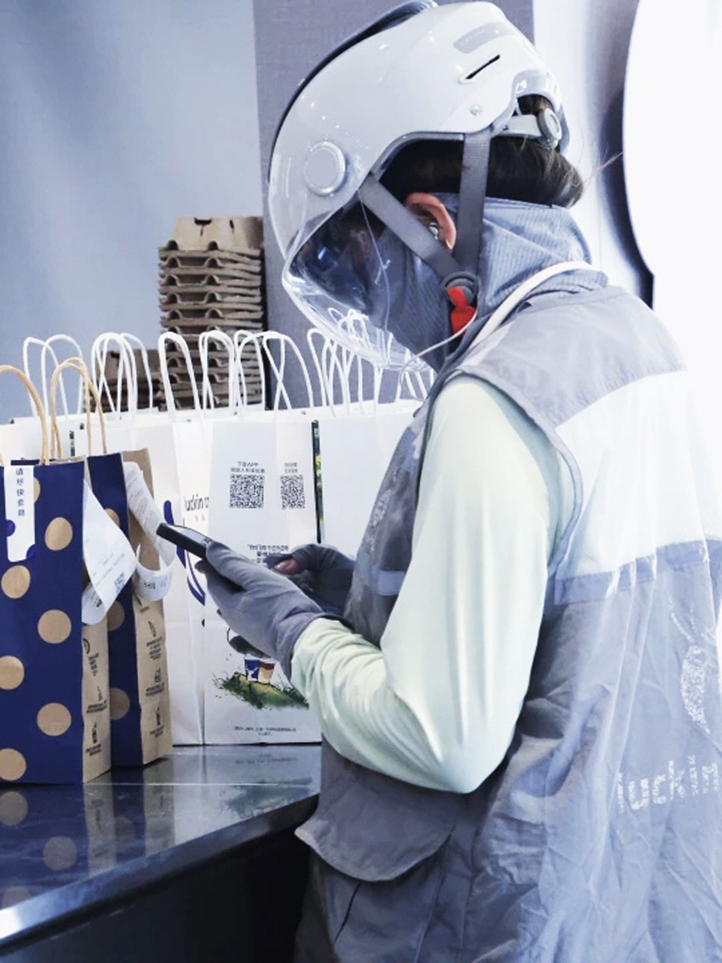 靖艾花在取餐。朱轩卿 摄4公里,可能是孩子从家到学校的距离,也可能是家长每天奔波的路程,更可能是外卖员每日的配送半径。4公里,说长不长,说短不短,却承载了许多人生活日常。