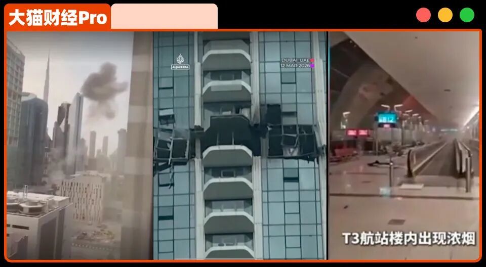 从美伊开战以来,这就是阿联酋的日常,迪拜的地标,比如迪拜机场、帆船酒店、棕榈岛费尔蒙酒店,都被击中,然后是金融中心大楼、公寓楼,就连哈利法塔,都差点被导弹击中。