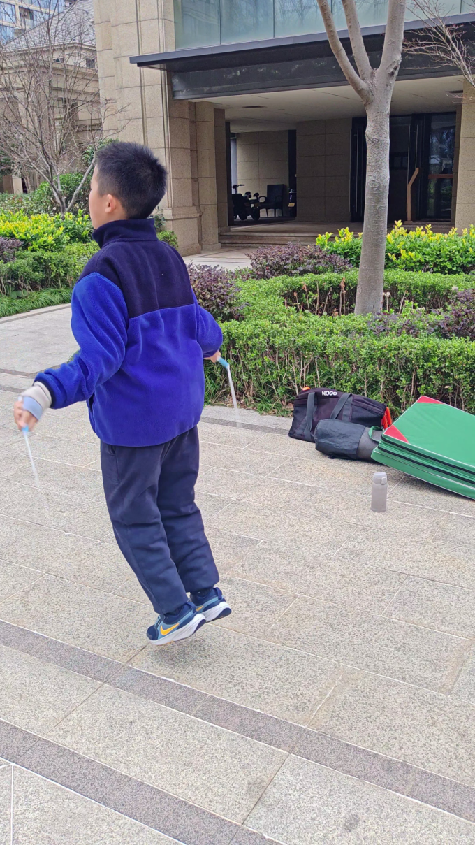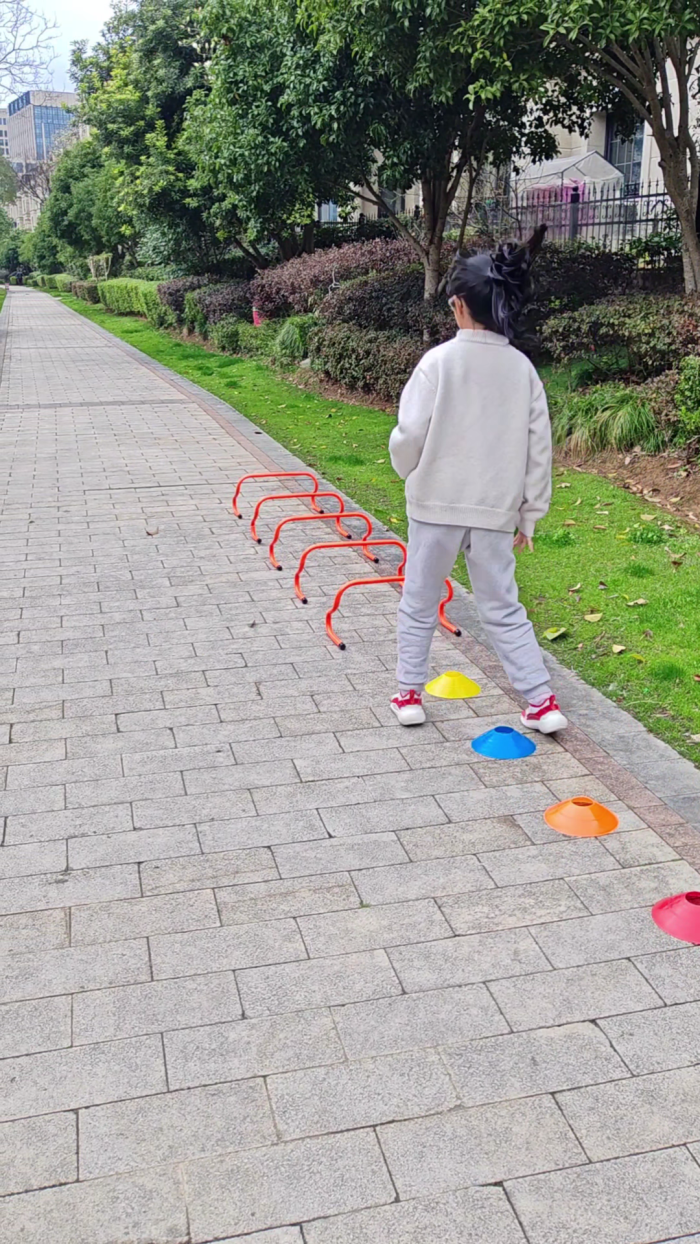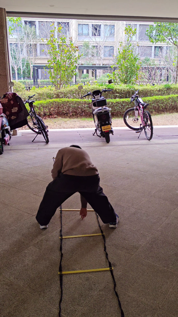 小王的服务分场景很清晰,以小学生为主,大多在小区楼下练基础,主打跳绳、摸高、跑台阶跳,用小篮架、标志碟、绳梯等做道具,轻松又能刺激骨骼;初中生或想冲高分的孩子,会带去附近运动场,针对性练跑跳等中考相关项目。