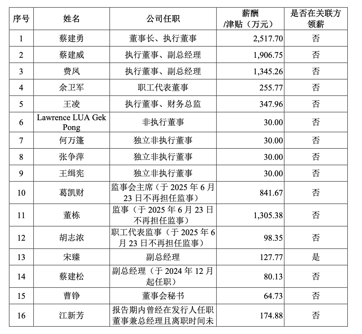 而他的两个弟弟,虽然只有初中学历,但蔡建威2024年却获得了高达1907万元的年薪,蔡建松从2024年12月开始担任副总经理,一个月就拿到了80万元的薪酬,换算成年薪也将近千万元。低学历与高薪形成鲜明反差。
