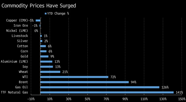 这对市场而言是一个有害的组合,增加了债券和股票同时抛售的可能性。对股票而言,这意味着更高的投入成本和更低的成本转嫁能力,从而导致利润率压缩。通胀推动收益率上升,以及央行相应的鹰派立场转变,加剧了这一局面。美元走强进一步放大了这种影响,尤其对能源进口国和新兴市场而言更是如此。