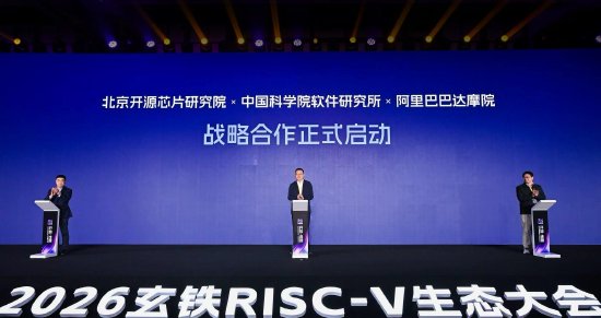 新浪科技讯 3月24日下午消息,今日举办的2026玄铁RISC-V生态大会上,阿里巴巴达摩院与北京开源芯片研究院、中国科学院软件研究所签署战略合作协议,将共同推进RISC-V技术创新与生态建设。