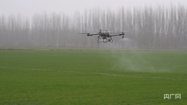 植保无人机正在阿克苏市麦田上空开展飞防作业 (央广网发 热普亥提·阿不力米提 摄)除农业领域外,低空经济在阿克苏正呈现出多元化场景拓展态势。
