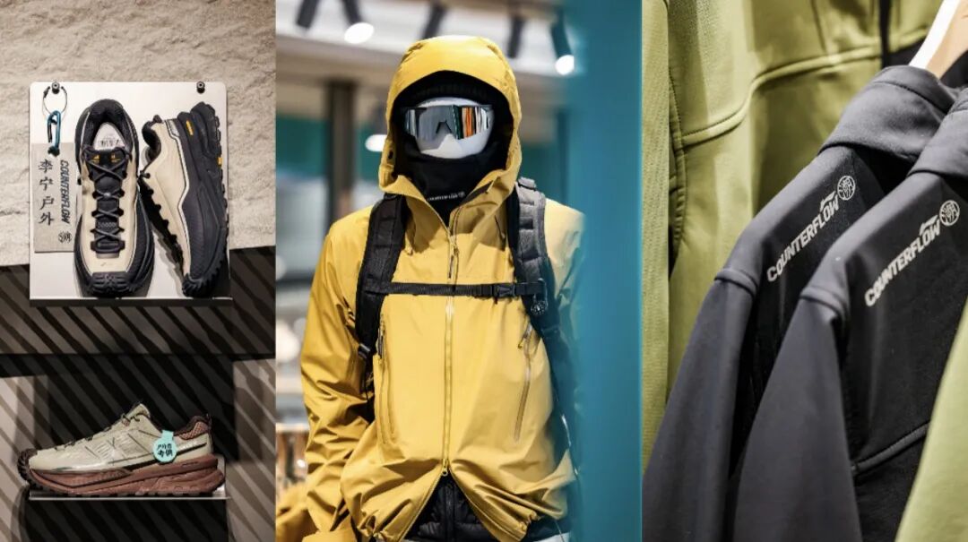 2024年李宁成立独立的户外品类,2025年加速户外布局,定位轻户外大众化市场,聚焦轻户外徒步旅游、近郊露营、城市通勤三大场景,户外品类产品主打冲锋衣万龙甲、三合一、户外鞋类,2025年流水同比翻番,并在2025年11月开设首家户外品类独立店“COUNTERFLOW溯”。