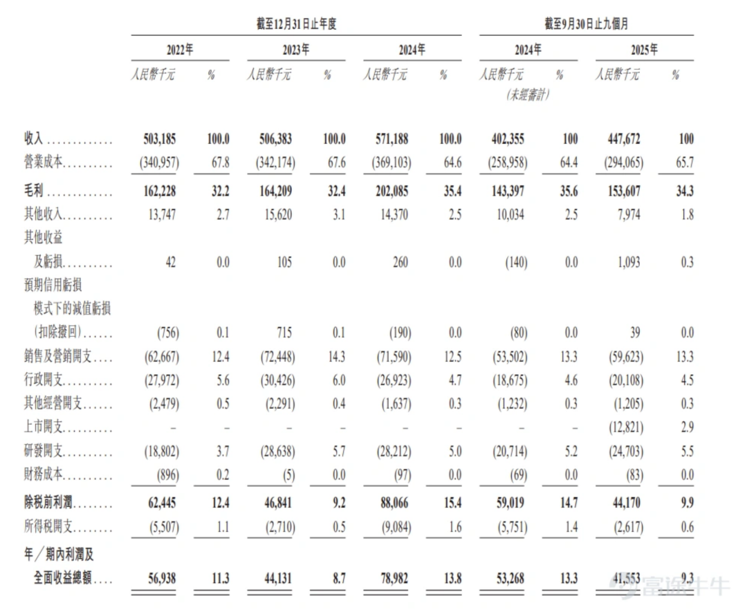 营收从2022年5.03亿,到2024年5.71亿,年复合增长率约6.6%。2025年前三季度4.48亿,同比增长11.4%。增长是稳健的,但绝非高速。