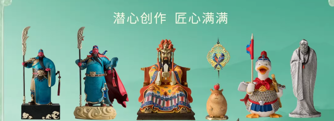 产品:核心是铜工艺品,也延伸到了金、银材质。产品设计大量取材自中国神话、传统文化(如大圣、葫芦),精准切中了一批有消费实力、有文化情怀的男性客群。