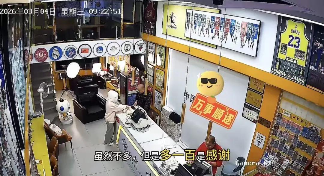 听到这里,曹峰从抽屉里拿出100元给女孩,让她去买点东西吃。女孩几次拒绝,曹峰坚持让其收下,并表示,“你缺吃的缺喝的就过来找我”,离开店前,女孩说,“干一个月我就还你”,曹峰说,“不用还,送你的”。
