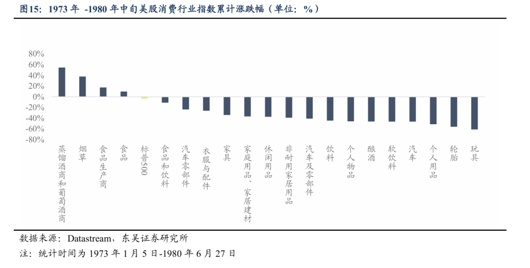 启示四:历史上海外滞胀周期中,消费板块整体抗通胀属性偏弱、多数跑输大盘,但A股消费表现或不必过度悲观。