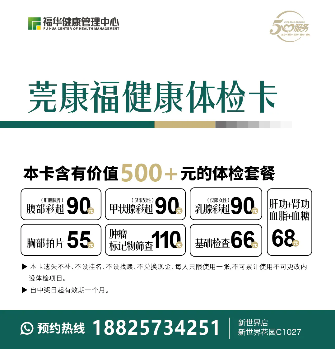 ● 莞康福健康体检卡内含价值500+元体检套餐,共500份。(使用说明见文末)