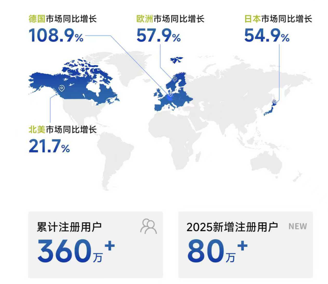 值得注意的是,2025年卧安机器人的全球化战略进入全面收获期,在多个海外核心高价值市场展现出强劲的爆发力——其中,在对技术与品质要求极高的德国市场,卧安机器人的业务取得了历史性突破,营收同比激增108.9%,并以此为引擎,强势带动整个欧洲市场实现57.9%的同比高增长。同时,在公司收入占比最高的日本市场,卧安机器人同样交出了同比增长54.9%的亮眼答卷。这一系列数字不仅验证了公司卓越的全球本土化运营能力,更标志着卧安机器人在全球核心市场的增长动能依然强劲,国际商业版图正加速重构。