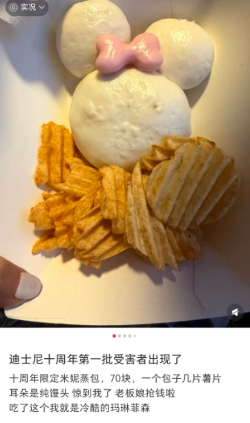 然而,从产品本身来看,一个包子加上两片超市随处可见的袋装薯片,即便套上了米妮的造型外壳,其实际成本与价值感也远远撑不起70元的售价。更令消费者心理失衡的是,与去年同期相比,从“两个造型馒头+红烧肉”变成“一个包子+薯片”,这种"通货膨胀"式的定价,让原本愿意为情怀买单的消费者感到被“收割”而非被“尊重”。