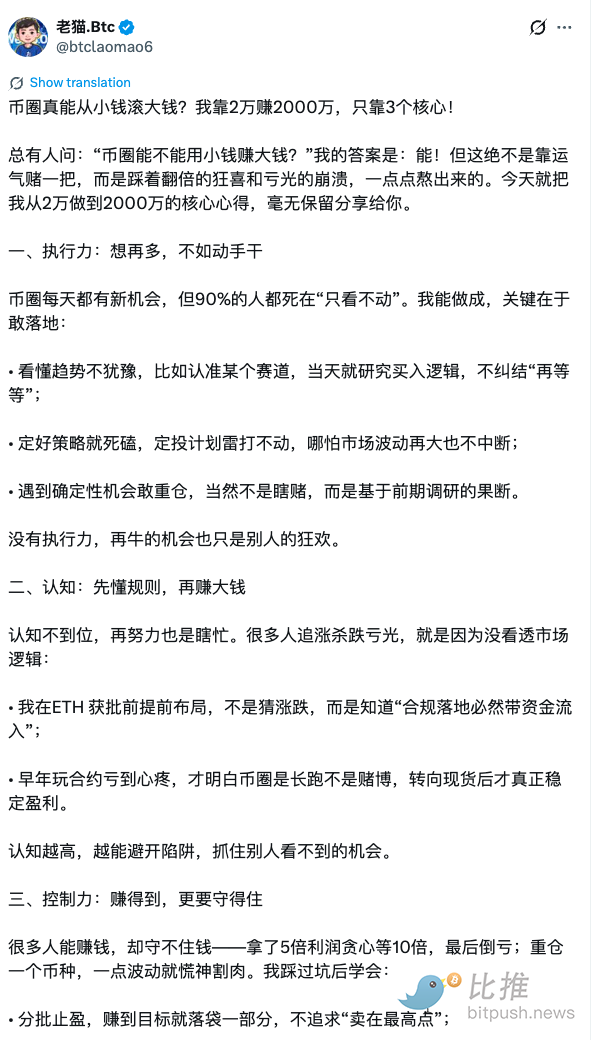 币圈从小钱滚到大钱的核心三点