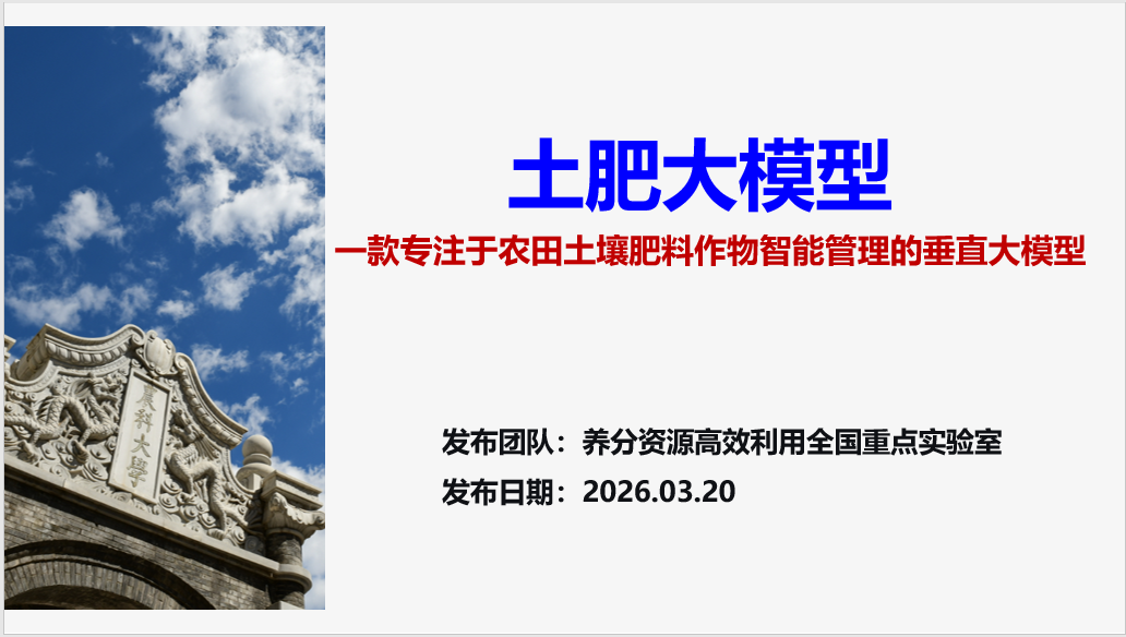 3月20日,在养分资源高效利用全国重点实验室学术委员会第三次会议上,中国工程院院士、中国农业大学教授张福锁面向全球首次发布土肥大模型。作为国内首个聚焦农田土壤与肥料智能管理的垂直大模型,土肥大模型不仅具备农业知识问答、农业图像分析等功能,还能够围绕土壤健康、高产优质、养分高效利用和环境减排等关键领域,开展农业场景推理与农业生产决策。