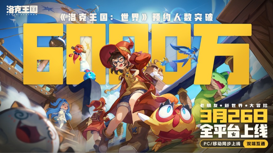 3月26日,腾讯旗下经典IP续作《洛克王国:世界》正式全平台上线,游戏支持PC、安卓、iOS、鸿蒙多端游玩,且实现全平台数据互通。据数据显示,该游戏上线前的预约量已突破6000万。