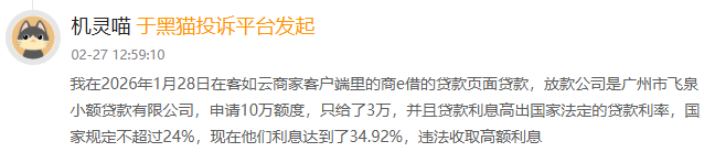 据黑猫投诉等网站显示,2025年10月的《关于加强商业银行互联网助贷业务管理提升金融服务质效的通知》文件发布之后,移卡关联的贷款业务依然被频频投诉收取会员费和36%利率的高额利息。
