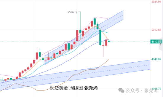 具体走势上,金价自周初低开于4484.99美元/盎司,先行走低触及当周低点4420美元,并收复缺口,之后连续反弹走强,于周四触及当周高点4800.19美元后,遇阻回撤,并一度跳水至4553美元附近,但最终有所止跌回升,也因周五耶稣受难日休市,而周线直接收于4668.84美元,周振幅380.19美元,相对于前周收盘价4505.63美元,收涨163.21美元,涨幅3.63%。
