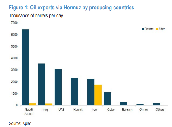 本次能源冲击可以与新冠疫情相提并论,认为其对经济活动的非线性冲击风险远大于2022年俄乌冲突引发的能源危机。与2022年不同,霍尔木兹海峡封锁可能导致能源实物供应的物理性短缺,亚洲超过50%的原油和逾三分之一的天然气经由该海峡进口。