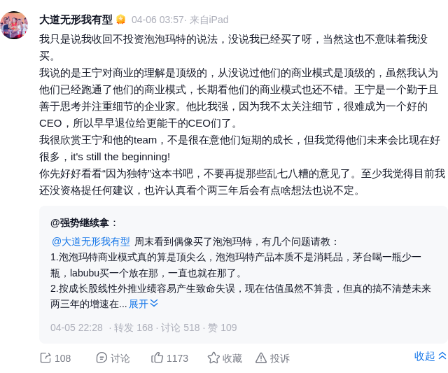 1.泡泡玛特商业模式真的算是顶尖么,泡泡玛特产品本质不是消耗品,茅台喝一瓶少一瓶,labubu买一个放在那,一直也就在那了。
