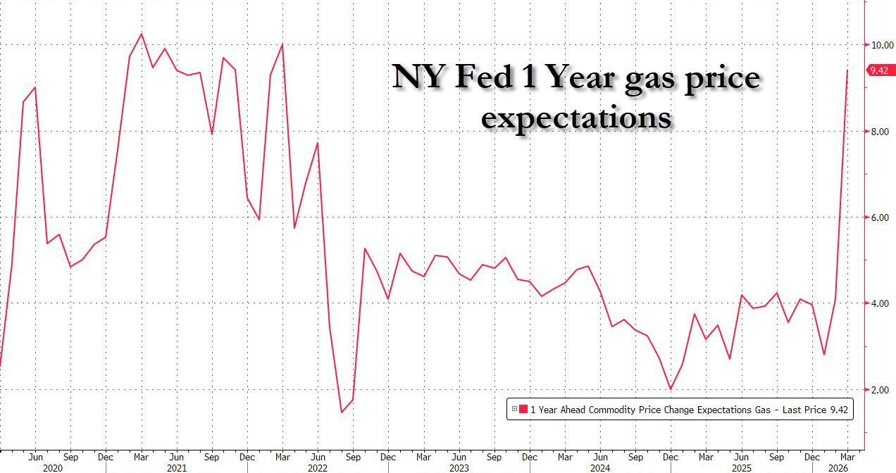 纽约联储最新消费者调查显示,美国通胀预期在3月份出现明显跳升,油价预期飙升至四年高位是主要推手,与此同时劳动力市场信心持续恶化,家庭财务状况预期也在同步走弱。