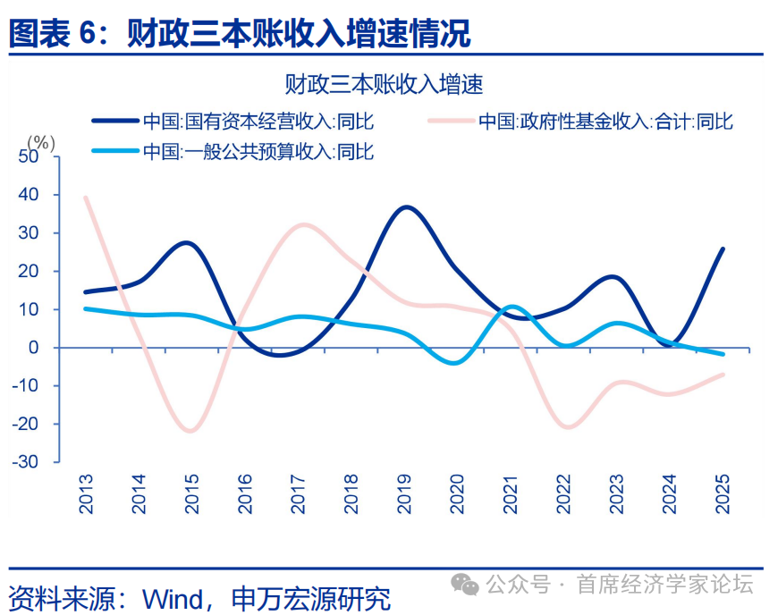 传统财源持续收缩之下,国企利润上缴或是当前的增量财力补充渠道之一。2021年以来,土地财政随房地产市场调整持续退坡。2025年全国政府性基金预算收入同比下降7%,地方政府性基金本级收入下降8.2%;相比之下,2025年全国国有资本经营预算收入达 8547 亿元,同比增长25.8%。