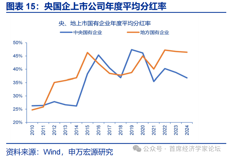 根据利润上缴机制,理论上,央企利润上缴比例大幅提升可能使其核心经营主体提升分红率以满足更高上缴比例要求,但实际影响或并非线性,仍需观察。实际操作中,集团旗下各级独立法人实体完成利润分配后向母公司归集资金,集团扣除必要留存后统一上缴国库。因此,根据利润上缴机制,理论上集团核心经营主体或需加大分红率,以满足集团更高的利润上缴比例要求。例如,2014年央企确定利润上缴提高5个百分点后,2015年央企上市公司年度平均分红率提升12%。2025年央企上缴利润同比增长78.5%,对应的上市公司经营主体分红率或亦提升,但提升幅度仍需观察。