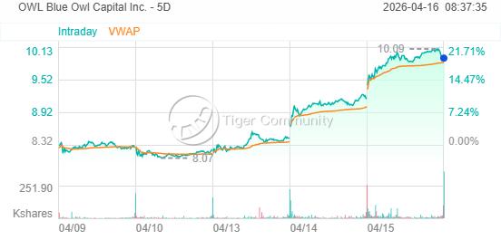 正因其在私募信贷领域的高度集中敞口,Blue Owl在本轮行业风波中所受冲击尤为显著,股价跌幅一度超越同类机构。而此次两日17%的反弹,也使其成为市场情绪逆转最直接的晴雨表。