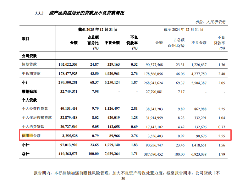 一是郑州银行信用卡累计发卡量突破87万张,2024年末-2025年末增长约5万张的同时,信用卡贷款余额却反过来下降了约3亿元。这两组数据的反差,很难不让人疑惑:郑州银行信用卡的增长质量到底在哪里?