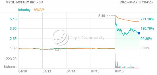 社交媒体公司Myseum宣布更名为Myseum.AI并将业务重心转向AI,周四一度暴涨超250%,但即便如此,周四收盘后总市值也仅有1000万美元。