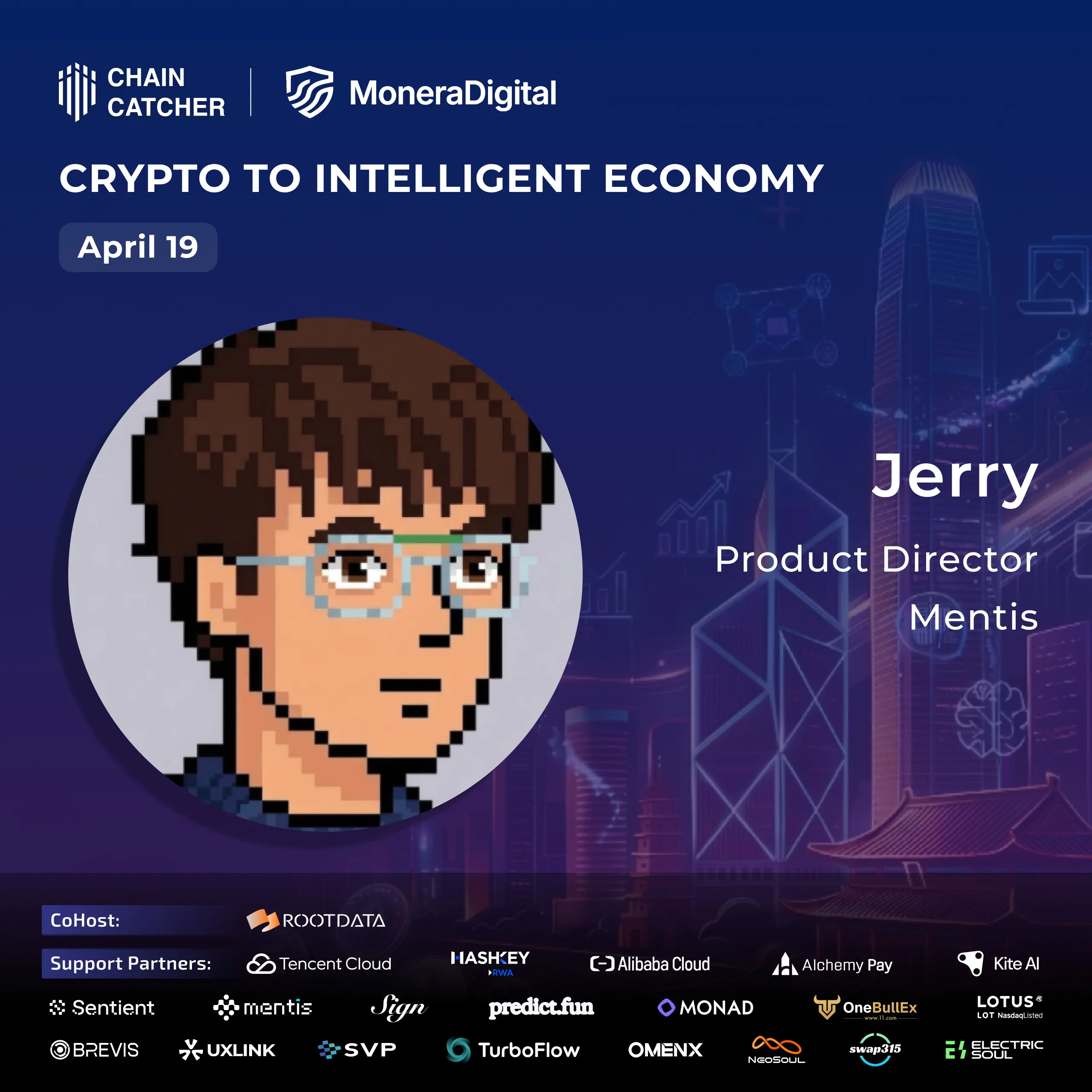 ChainCatcher 消息,Mentis 产品总监 Jerry 确认出席将于 4 月 19 日在香港举办的“Crypto 2026:从加密货币到智能经济”主题论坛,并参与圆桌讨论。本次活动由 ChainCatcher 联合 RootData 举办,是香港 Web3 嘉年华大会重要周边活动之一。