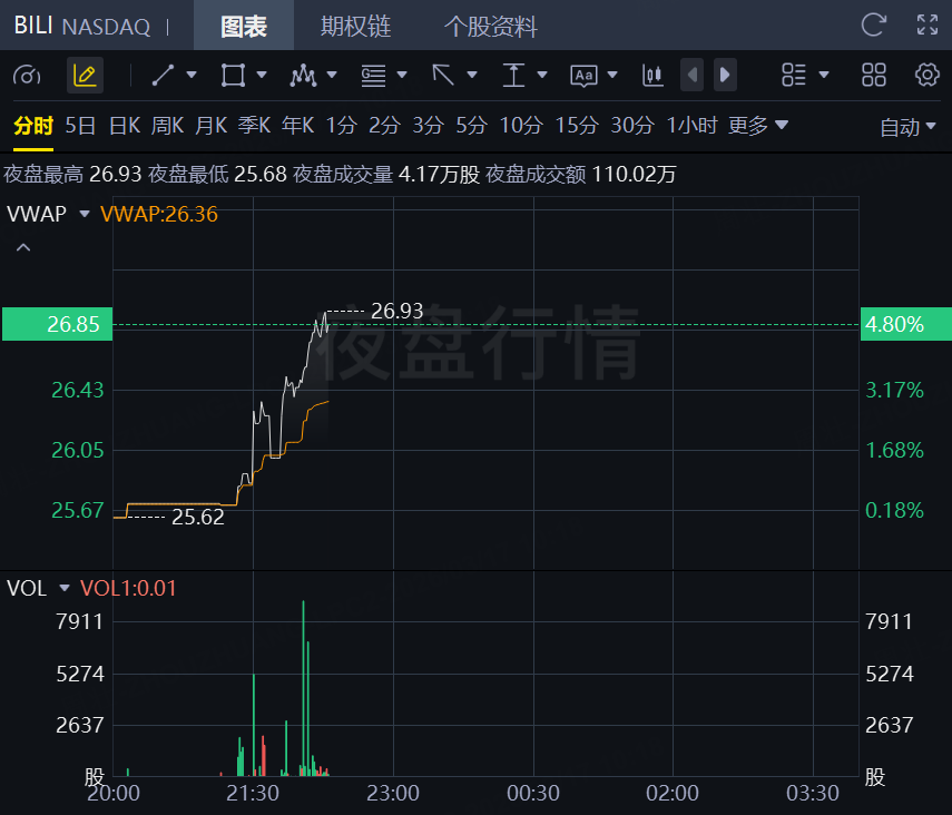 熱門中概股夜盤多數拉升!嗶哩嗶哩升逾5%,阿里巴巴升逾3%